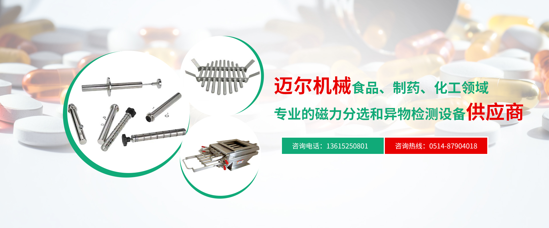 揚州邁爾機械科技有限公司 是食品、制藥、化工領域專業的磁力分選和異物檢測設備供應商,我們依托歐洲同領域的技術,致力于為食品、制藥、化工行業提供高效的分選和檢測設備,幫助企業在生產加工過程中解決所遇到的異物難題。